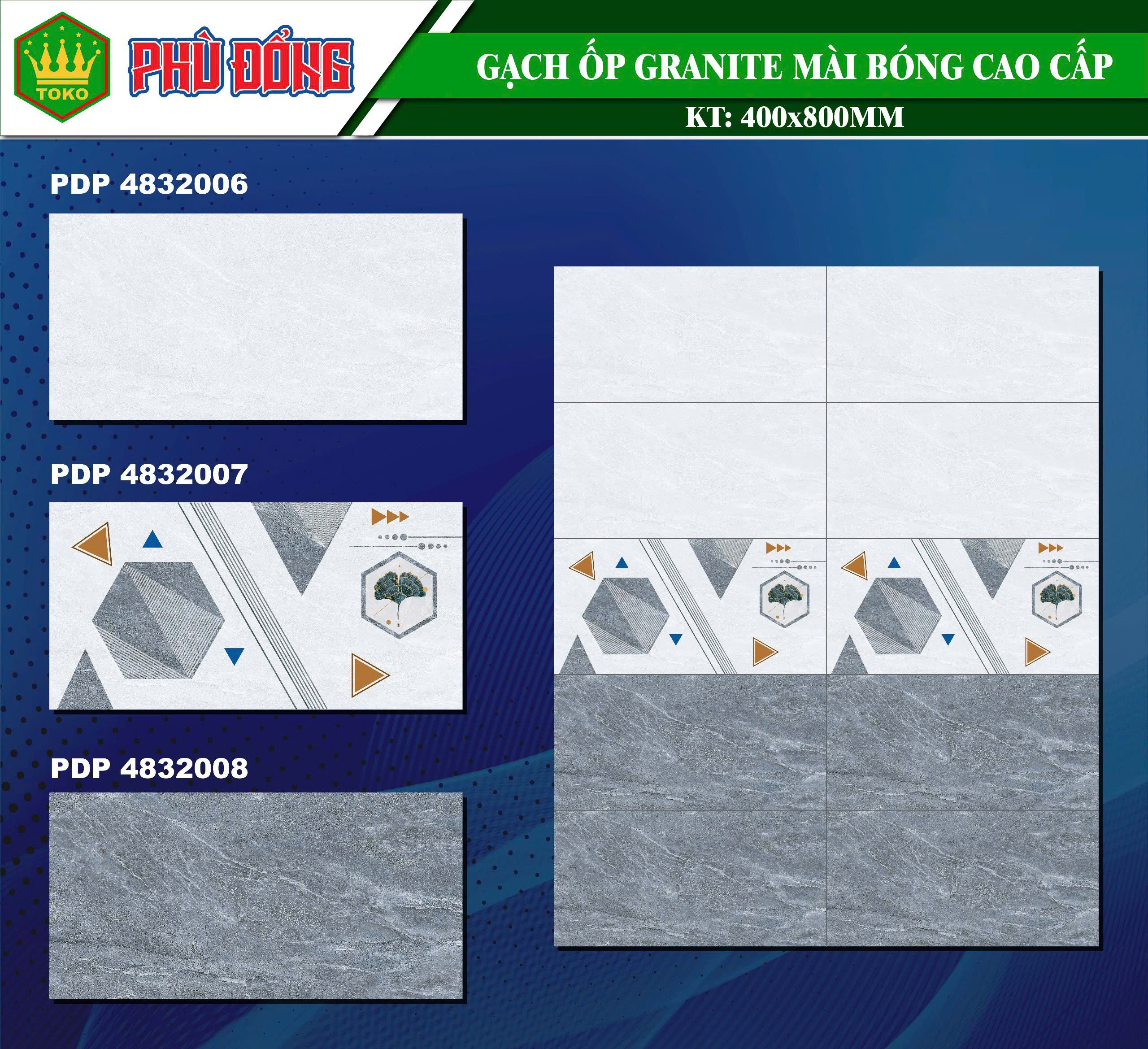 Gạch 40×80 TOKO PHÙ ĐỔNG 4832006-4832007-4832008